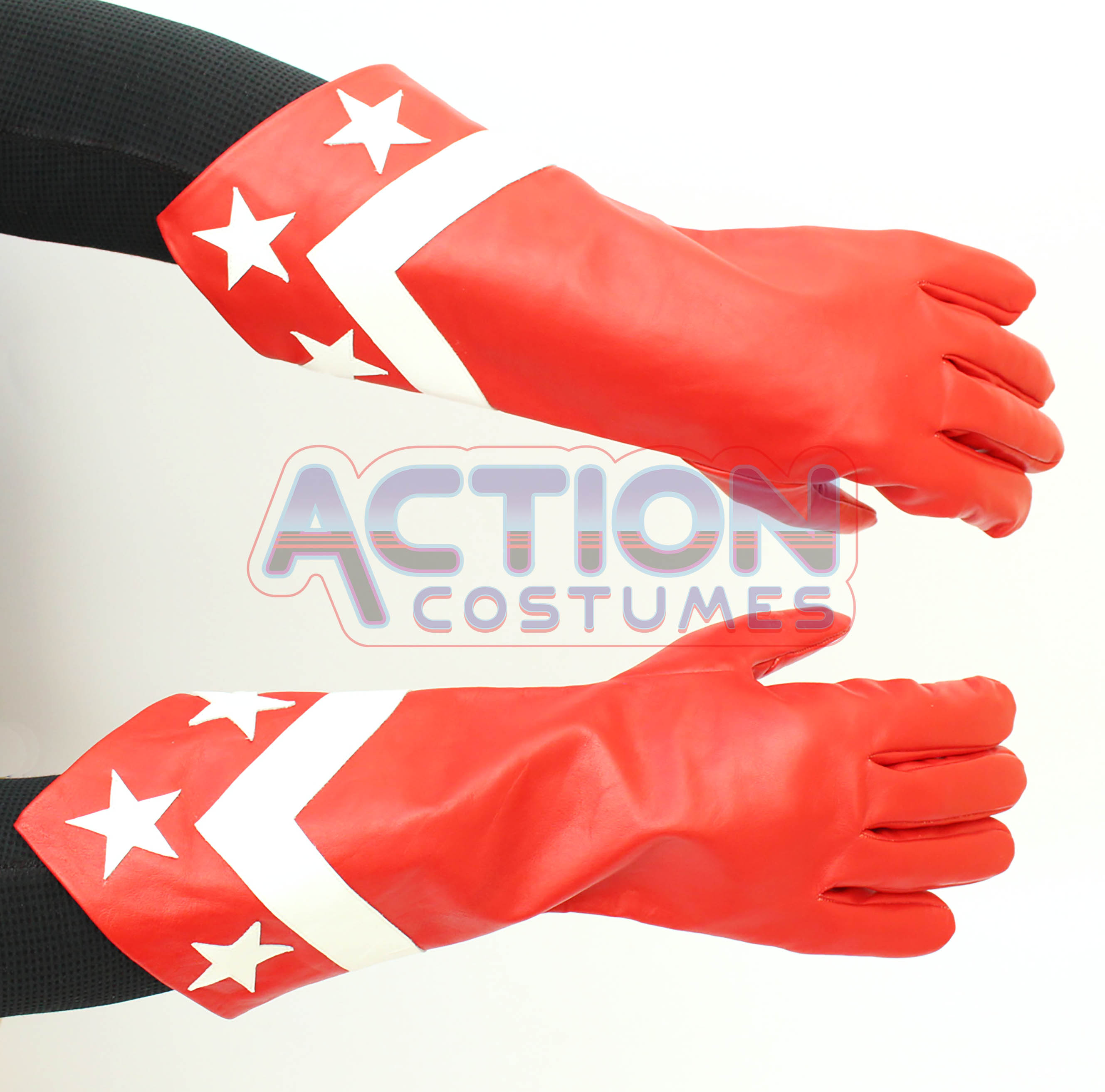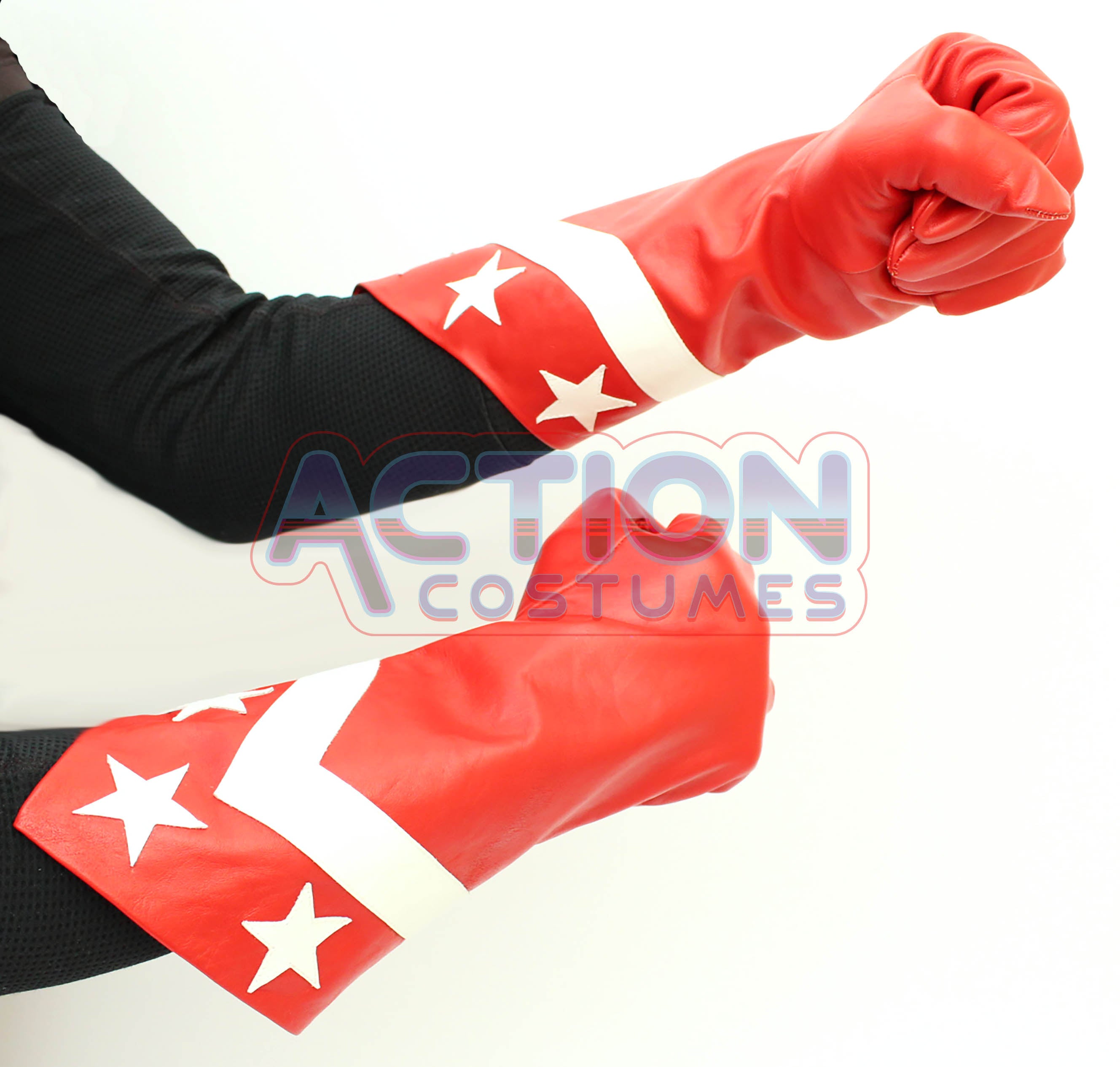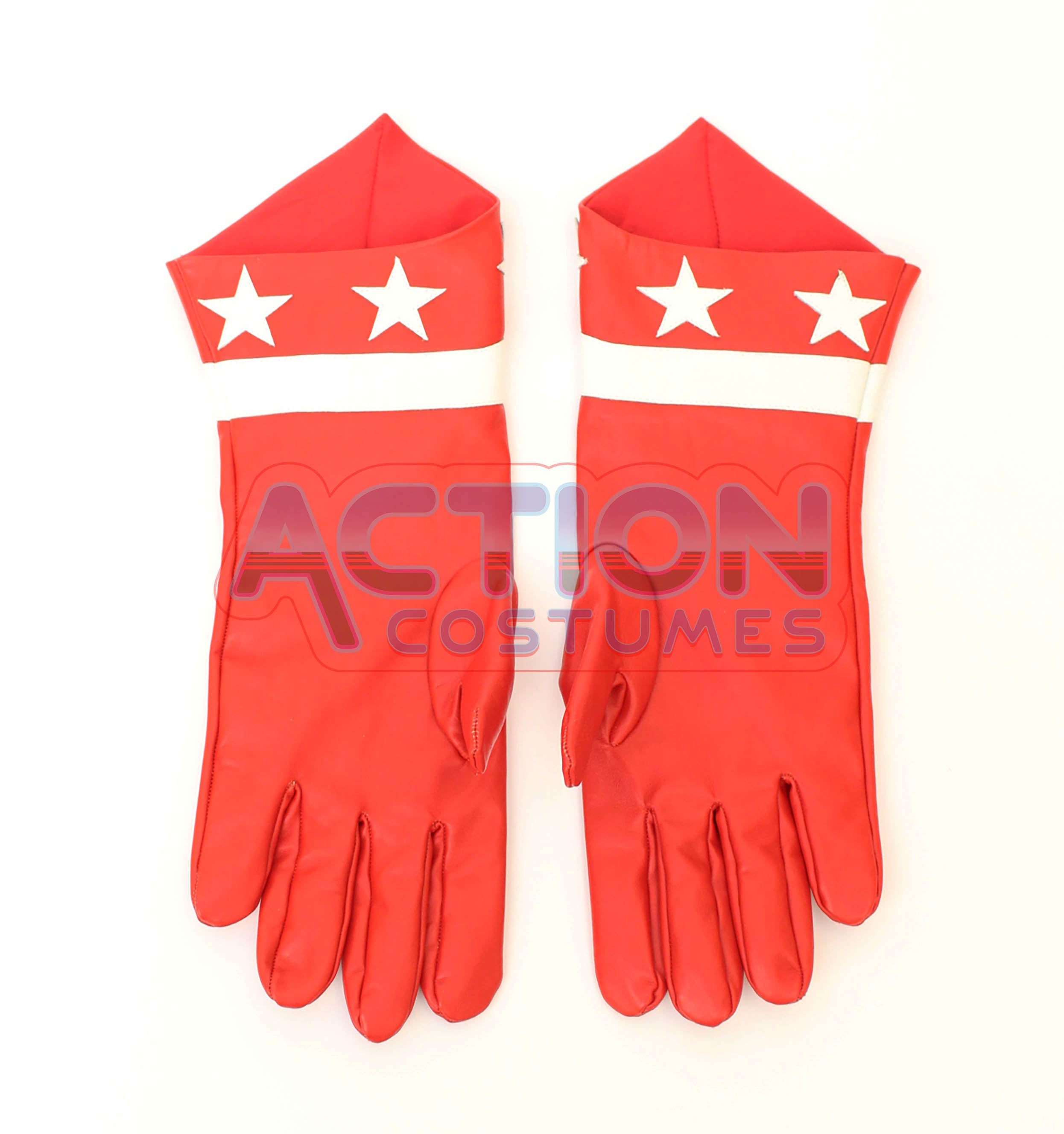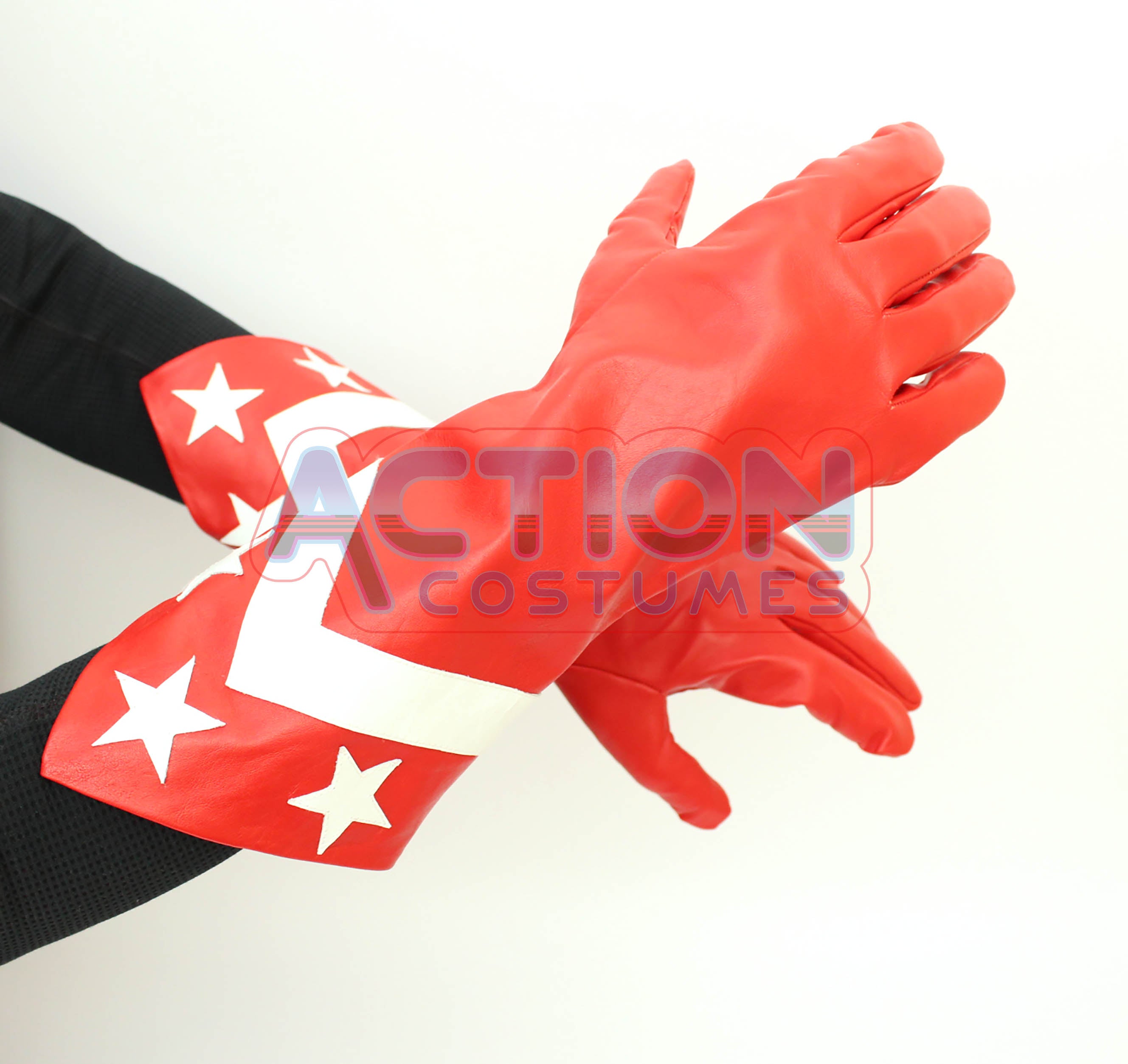The stars are carefully made and sewn to the gloves. They are made of white leather and are the same size and material as the stars on the boots to match. The red leather is the same as the boots, only that this one goes through a lower process to make the leather thinner and the gloves more flexible.